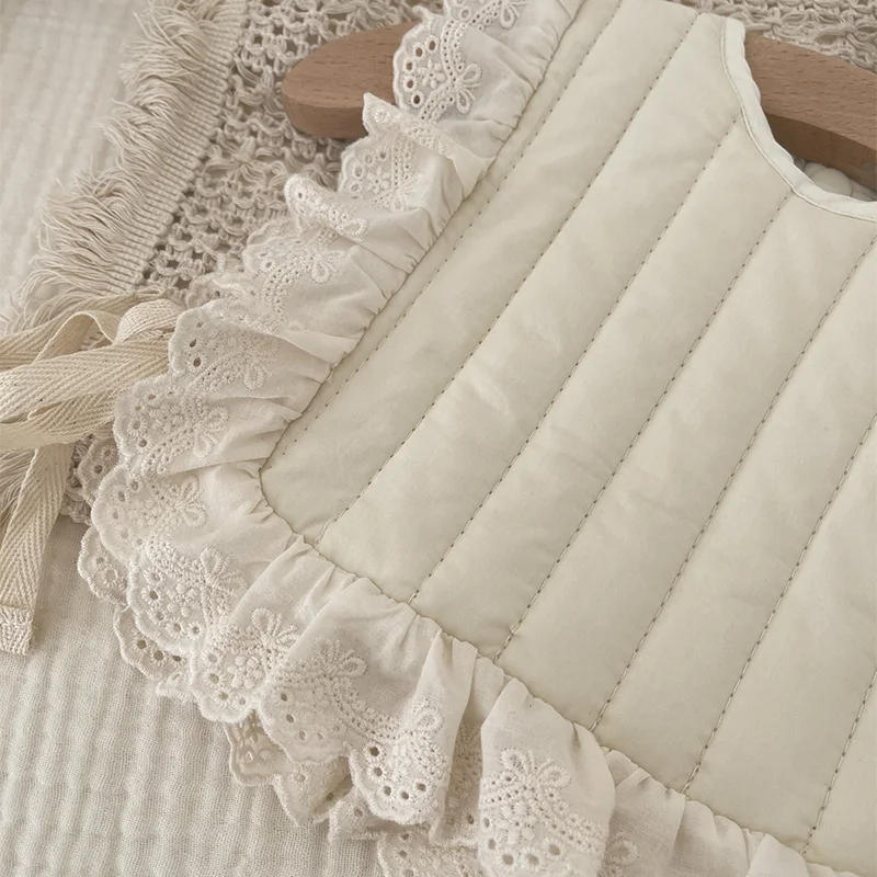 Baby Girls Cotton Lace Bibs Soft Cotton Adjustable Lace-up Baby Bib Newborn Burp Cloths for Toddler Kids Feeding Vest Apron